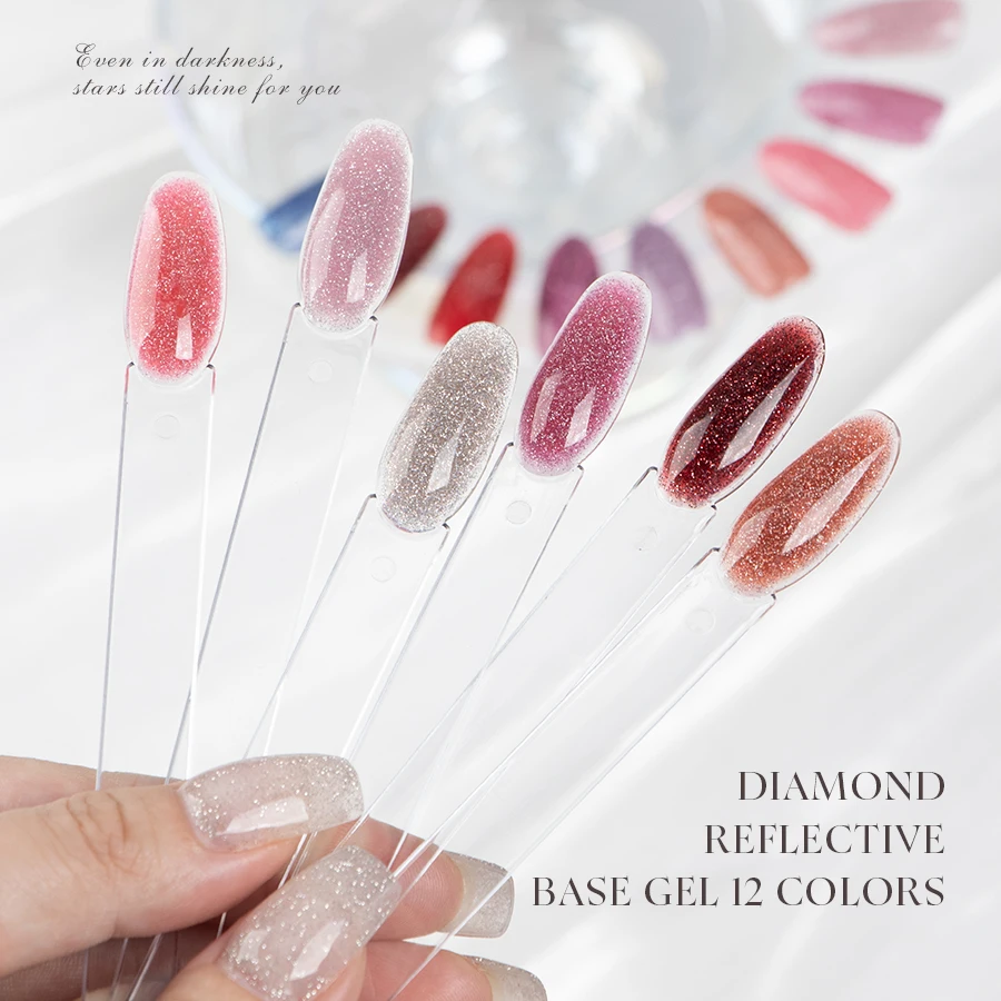 Vinimay 12 Colors Diamond Reflective Rubber Base Gel High Gloss OEM/ODM Flash Diamond Glitter Gel Polish Set for Salon