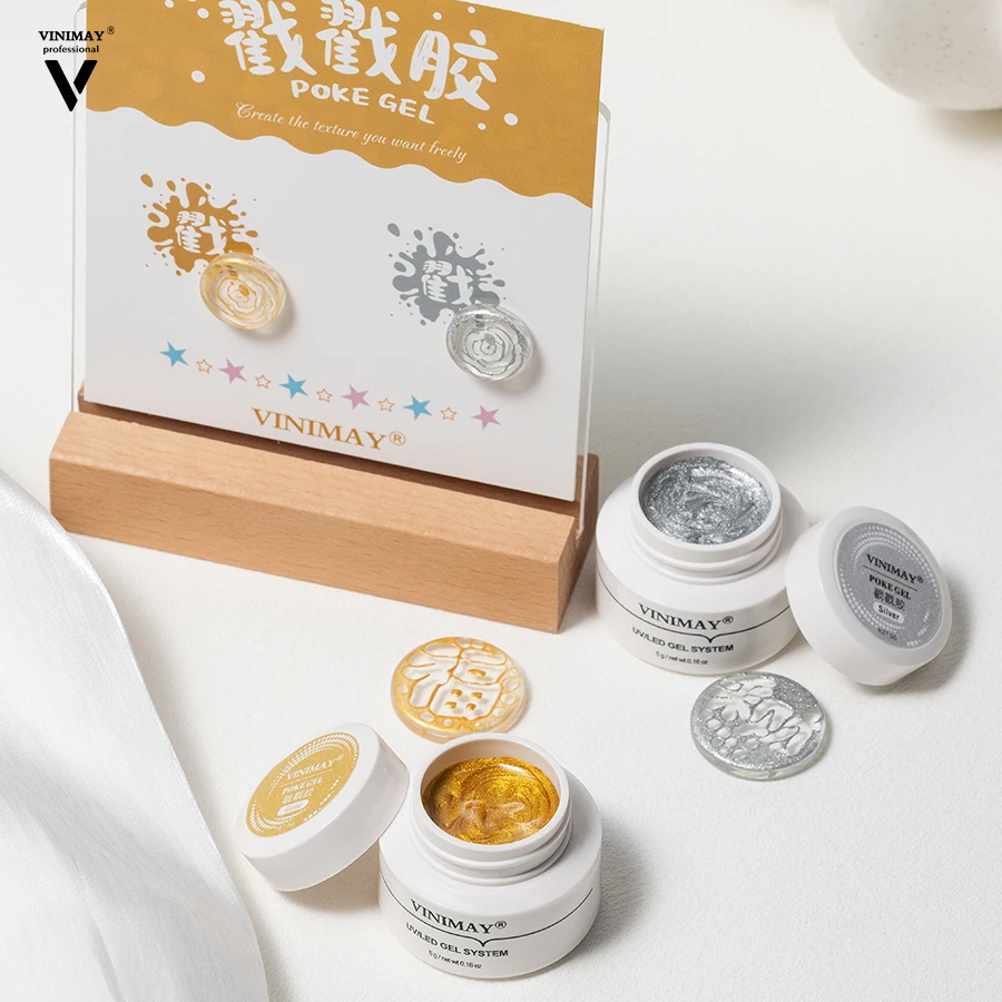 Vinimay New Gel Polish 2025 Poke Gel Nails Gold Silver Black White Colors Poke Base Coat OEM/ODM Wholesale Poking Gel Nail Art